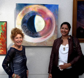 Linda Stallone Louis and Anu Annam with Linda's 'Mother of Tides 0109' at the HAC Art-trium Members Show opening. |